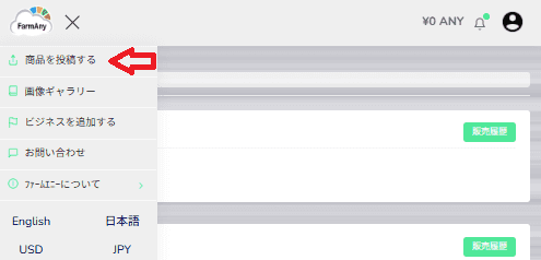 バーガーメニューが展開するので、「商品を投稿する」を選択します。