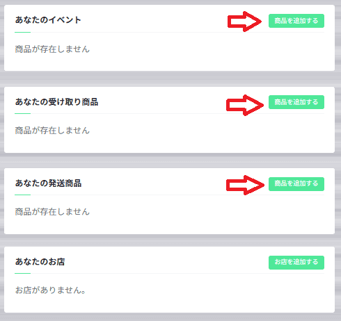 商品には「受け取り商品」「宅配商品」「イベント」の3種類あります。 それぞれの商品の違い詳細はこちらを参照してください。ご希望の用途に合わせて、商品追加を行ってください。