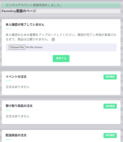 本人確認書類をアップロードすると、申請は完了です。承認されましたらお知らせが届きますので、しばらくお待ちください。また、承認前でも商品やお店の登録作業を進めることができますが、公開はされません。ビジネスアカウントが承認されると、公開することができます。